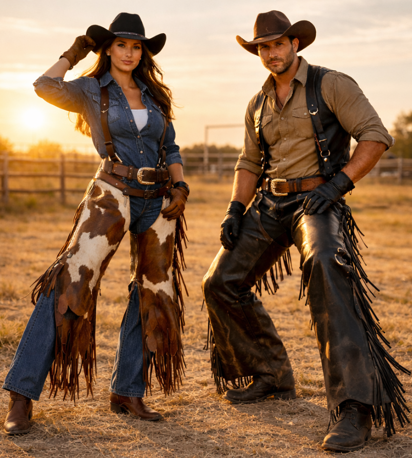 Hand-selected leather chaps chosen for their fit, durability, and everyday performance ideal for riders, workers, and western lifestyles that demand reliability and style.