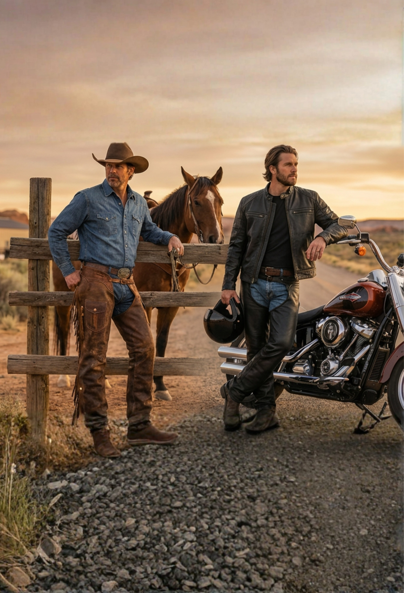 Crafted for long rides, hard work, and western tradition, our leather chaps deliver dependable protection, lasting comfort, and a fit that moves with you wherever the road, ranch, or job takes you.